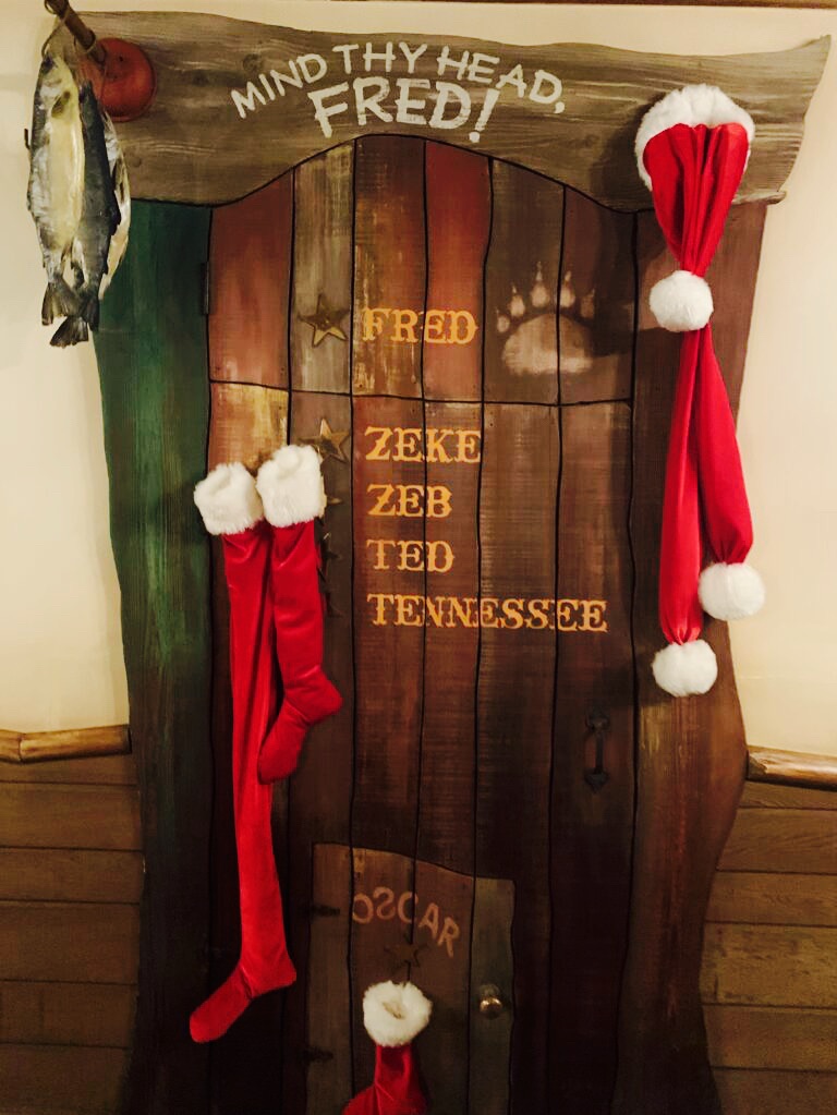 FRED/ZEKE/ZEB/TED/TENNESSEE と名前がずらっと並んだこのドア。サンタ帽や靴下が飾られていて、ベアたちがここで準備をしてるのかな…って想像させる可愛いデザインですね。