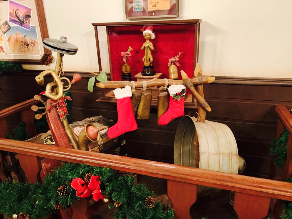 東京ディズニーランドで冬にしか見られない特別ショー「ジングルベル・ジャンボリー」。カウントリーベア・ジャンボリーのクリスマス特別バージョンです。シアターのロビーは、まるで森の中のロッジに迷い込んだような、あたたかいクリスマスムードで包まれていました。